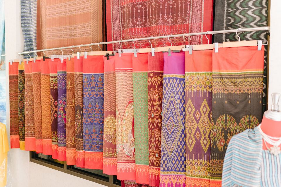 สินค้า : ผ้ามัดหมี่, ผ้าพื้นเรียบ, ผ้าคลุมไหล่, ผ้าขาวม้าไหม, ผ้าโสร่ง, ผ้าแบบชุด (หมี่ 2 เมตร, พื้นเรียบ 2 เมตร)