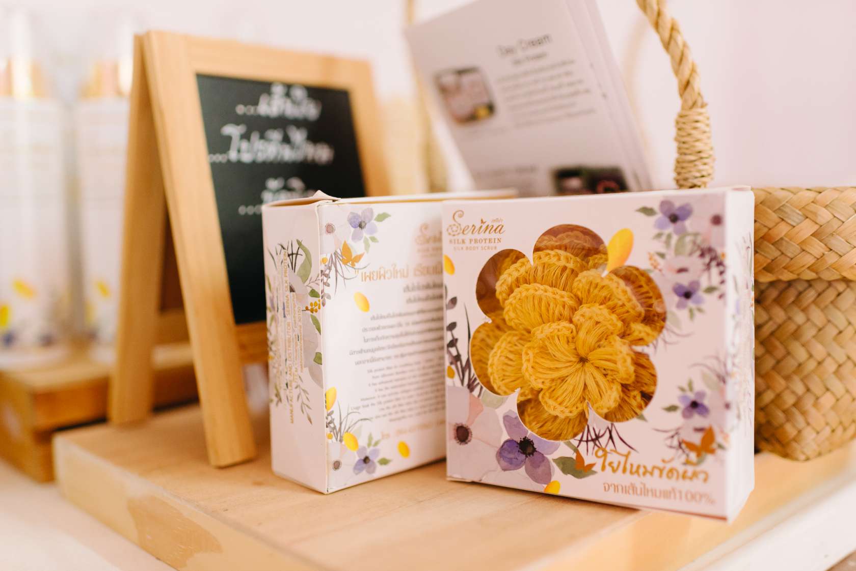 สินค้า : เครื่องสำอางจากไหม, ผ้าไหมคลุมไหล่